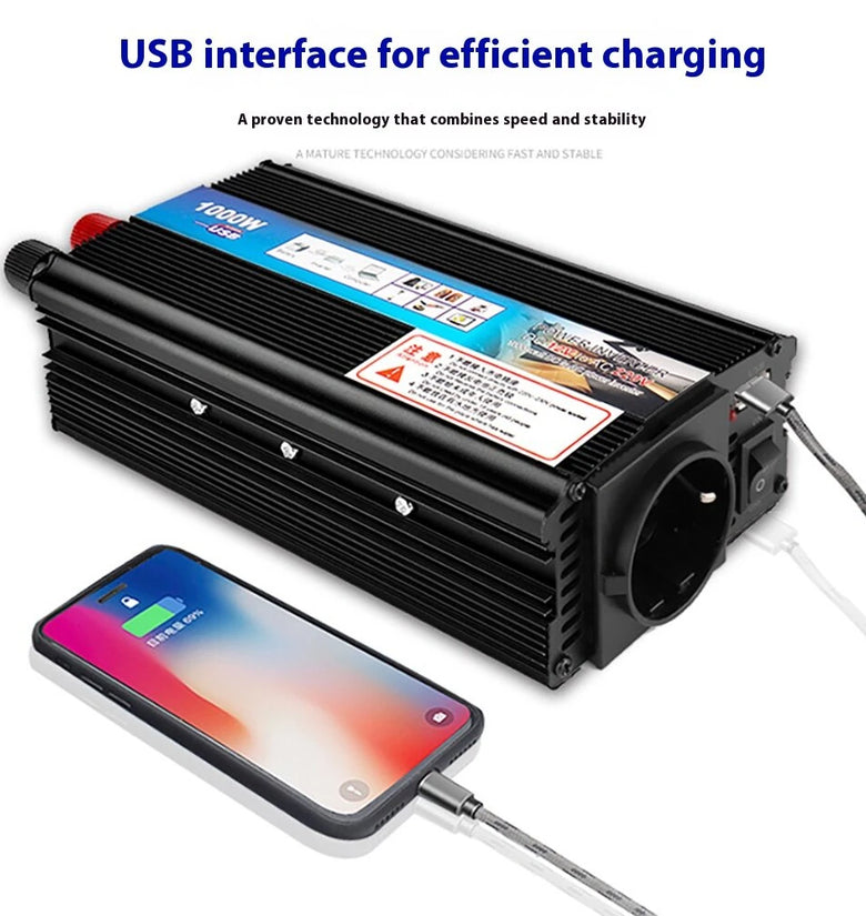 • 1000W Car Power Inverter 12V to 220V Converter DC to AC Inverter EU Plug Efficient Heat Dissipation for Outdoor Home Car