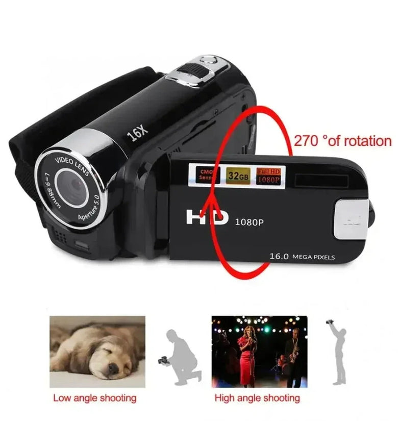 1.Versatile Screen Rotation: The camcorder features a 270-degree rotating screen, enabling you to capture every angle with ease. Whether you're vlogging, capturing family moments, or shooting travel footage, the adjustable screen provides the flexibility needed to review and frame your shots perfectly.