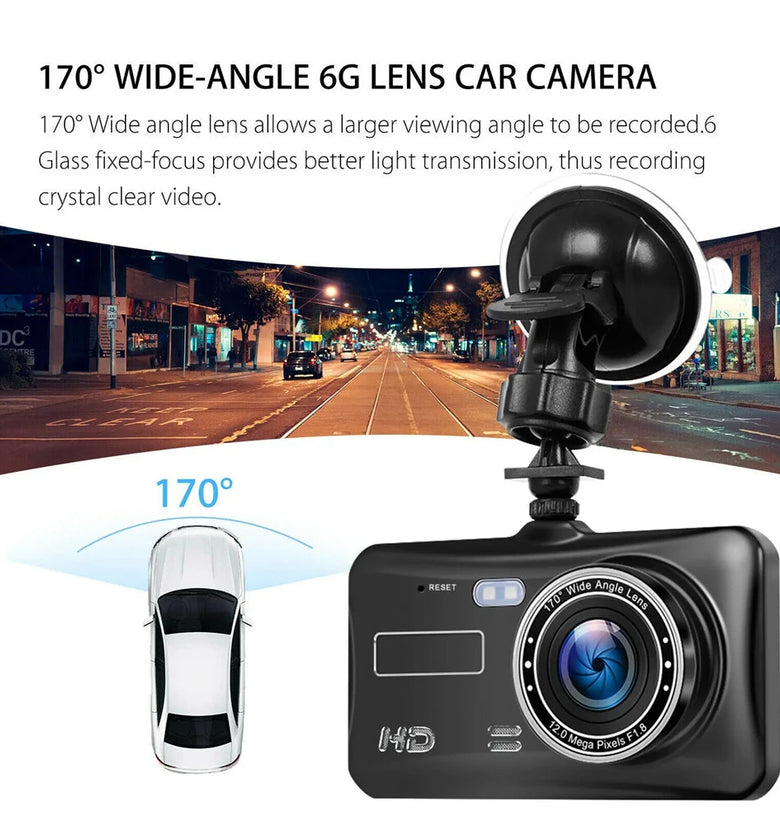 - 170° Wide-Angle Lens: Captures a broader field of view, ensuring comprehensive front and rear coverage.