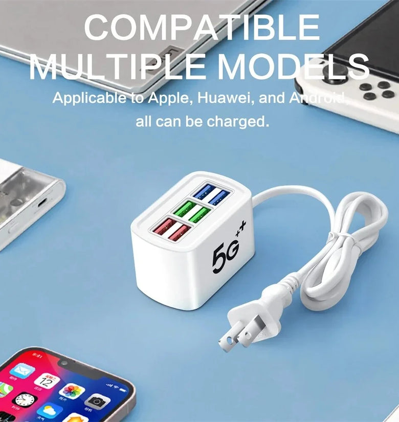2. Multiple USB Ports: Equipped with 6 USB ports for simultaneous fast charging of multiple devices.