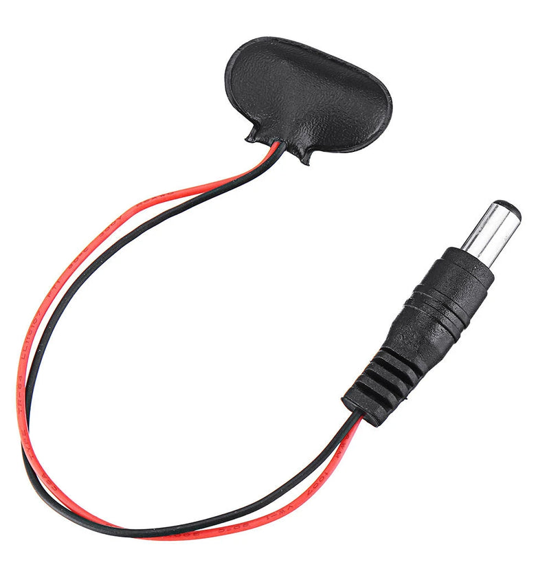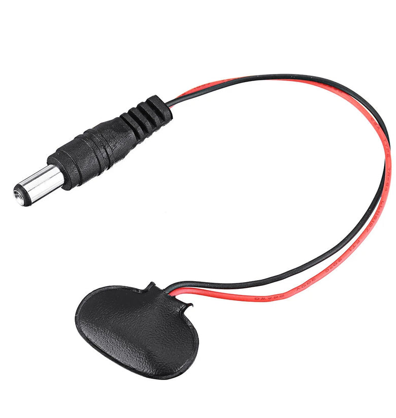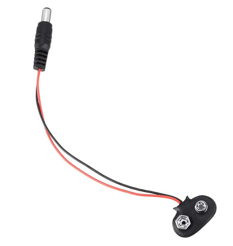 - After the DC male is connected to the 9V battery, the polarity is positive and negative.