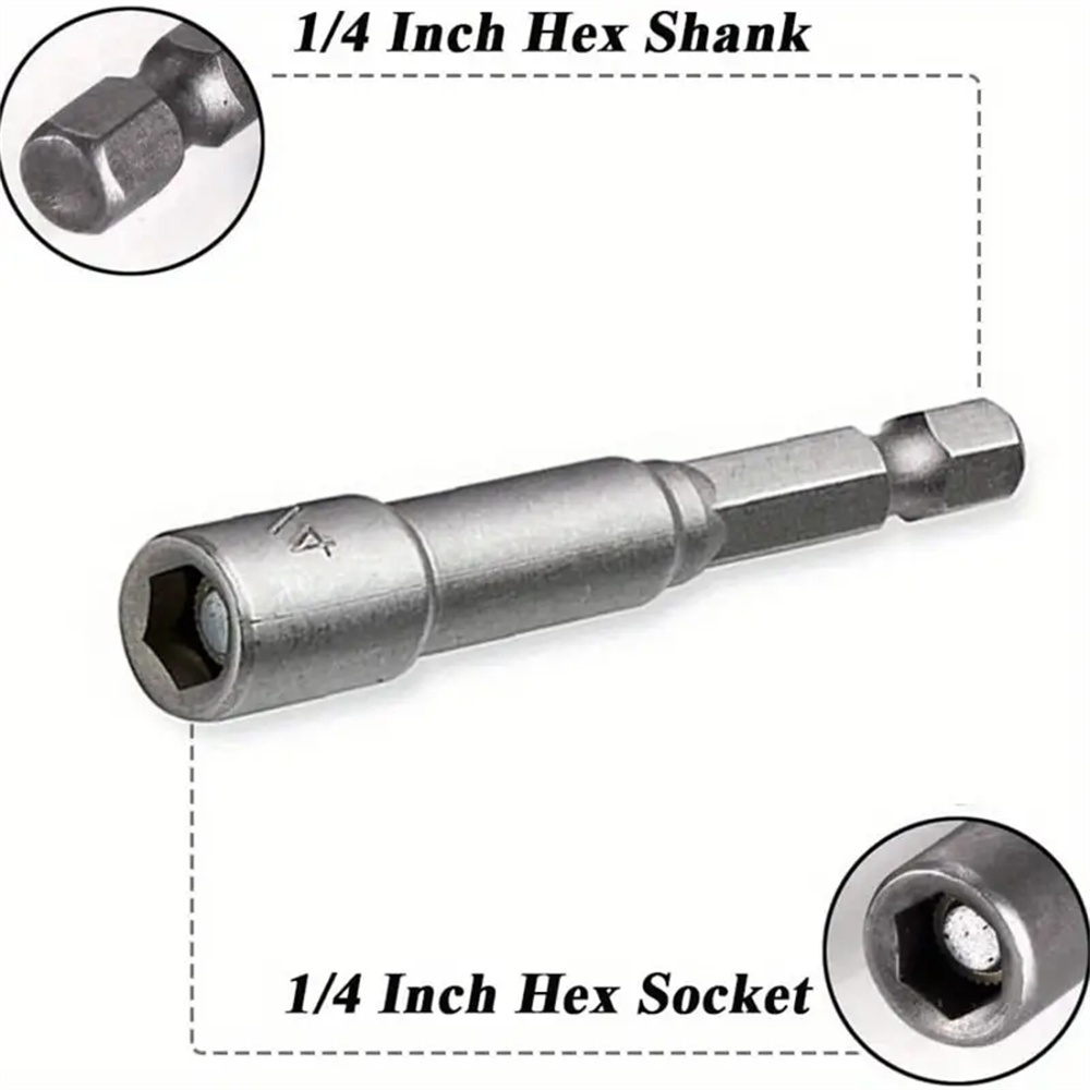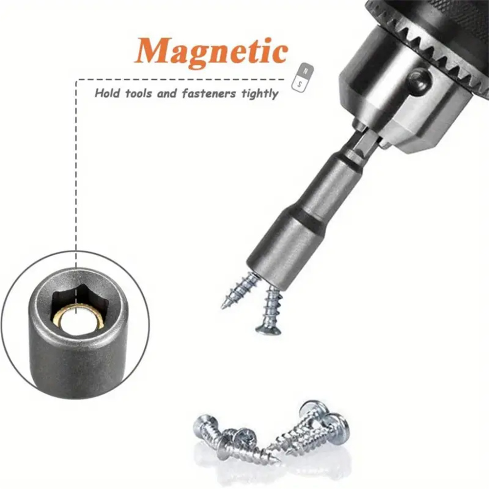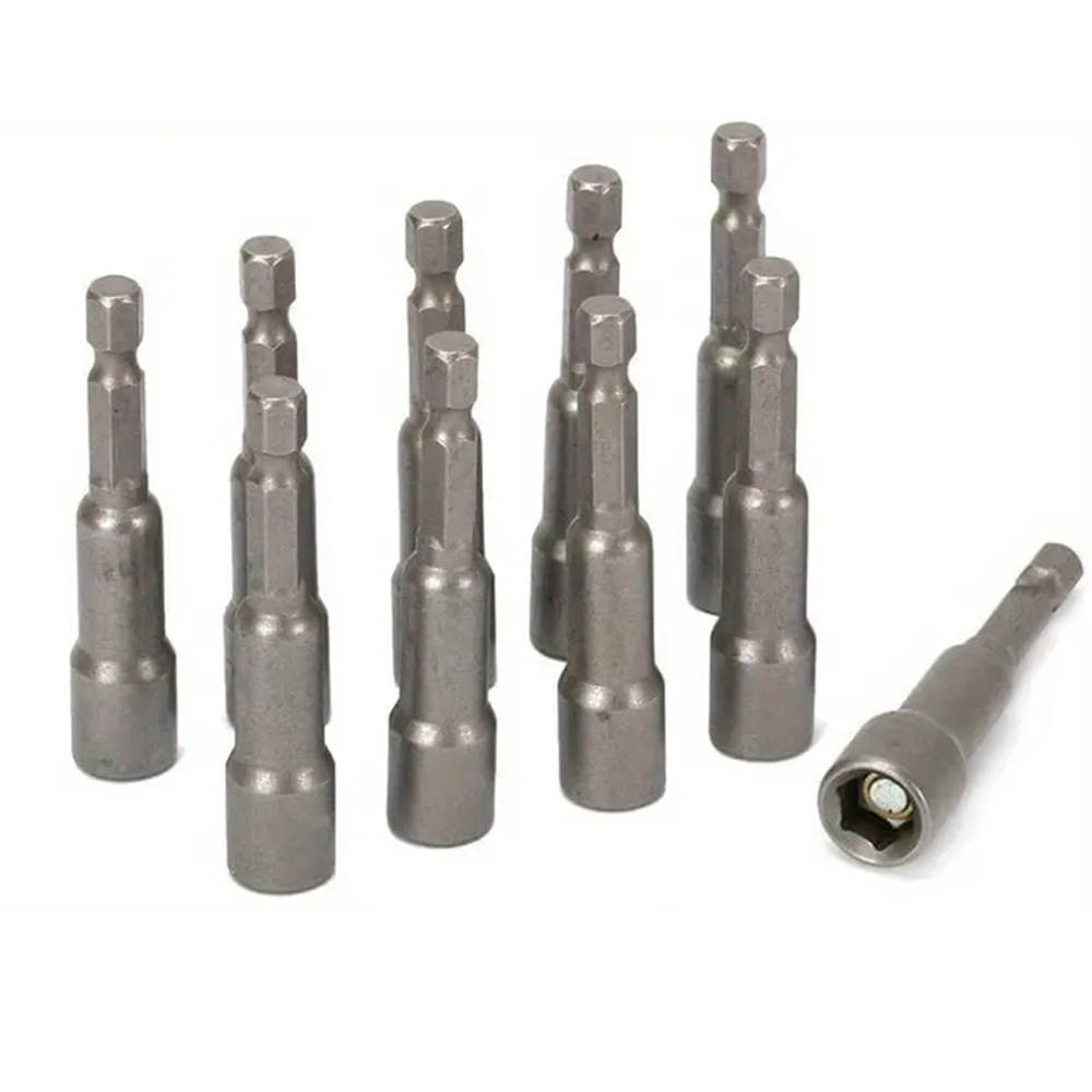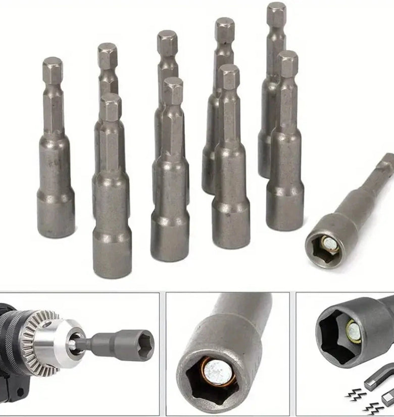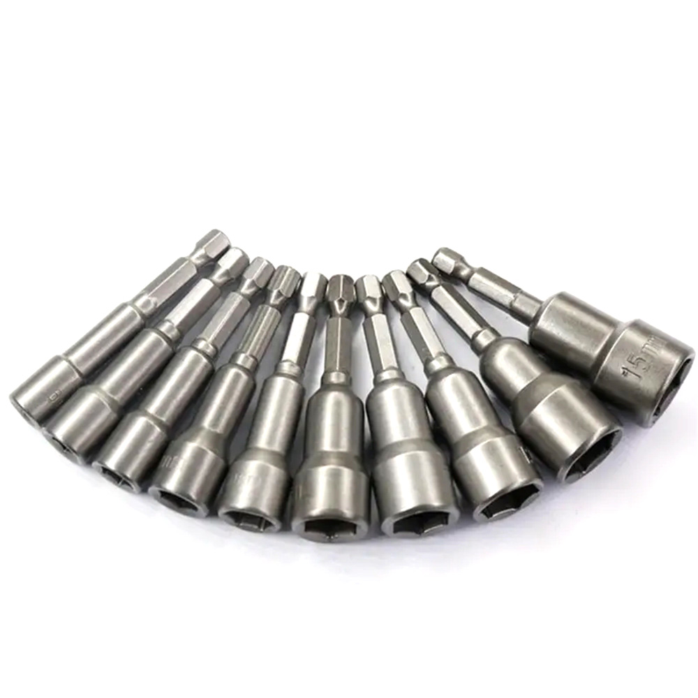 • 10PCS Impact Socket Magnetic Nut Screwdriver Set 6mm-19mm Heat-Treated Chrome Vanadium Steel 1/4" Hex Key Drill Bit Adapter for Power Drills and Impact Drivers