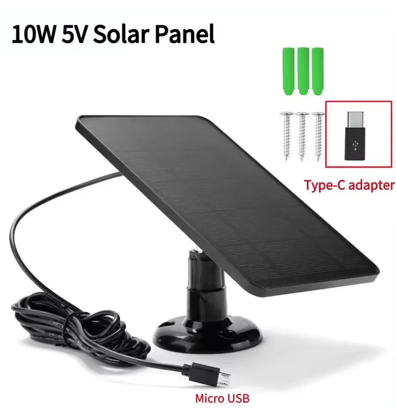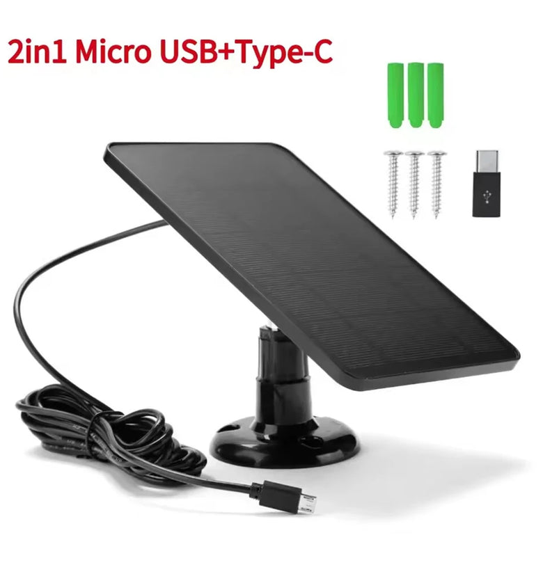 - Wide Compatibility: Featuring a Micro USB and Type-C 2-in-1 charging interface, the solar panel is versatile and compatible with a broad range of devices. It is ideal for recharging batteries, powering outdoor security cameras, smart doorbells, mobile phones, and garden lights. Always ensure proper waterproof protection for optimal performance.