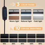 Lighting Modes: Warm Light (3000-3200K), Natural Light (4500-5500K), Cold Light (6500-7000K)