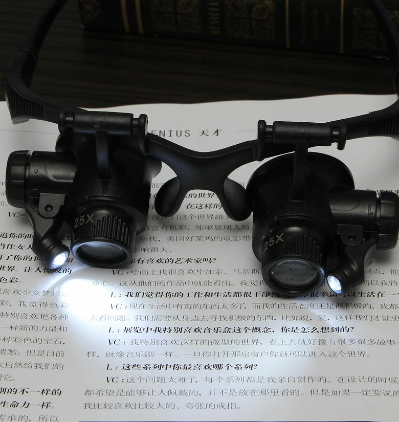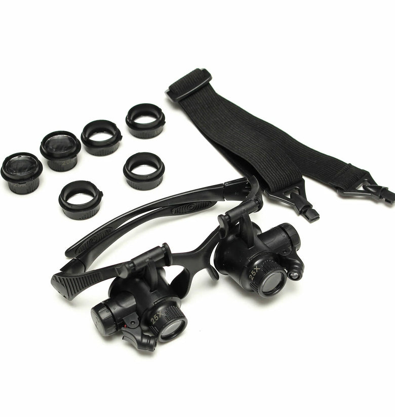 10X 15X 20X 25X Spectacles Glasses LED Lamp Magnifier Loupe8 Jewellery Maintain with 8pcs Replacement Lens