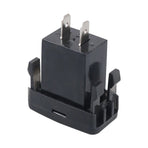 '+' is connected to the positive pole, '_' is connected to the negative pole |