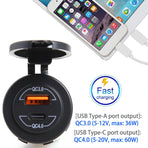 2. The USB charger adopts QC3.0 fast charge technology, so it charges compitialbe devices up to 4x faster than usual chargers. The USB Type-C port supports both Power Delivery (PD) and Quick Charge 4.0. Simultaneously charge multiple devices at super charge speeds for a maximum combined output of 6A/36W.