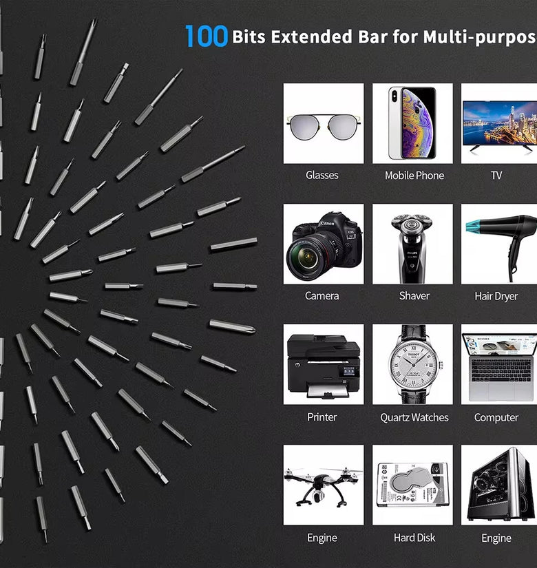 mso-bidi-font-family:'Times New Roman';font-size:10.5000pt;mso-font-kerning:1.0000pt;'>Comprehensive Precision Bits Set: The kit includes 100 precision bits tailored for a wide array of applications. Whether you're working with electronics, small appliances, or intricate components, this set provides the flexibility and precision required for most maintenance operations.