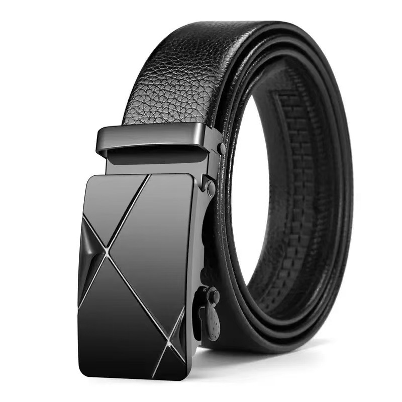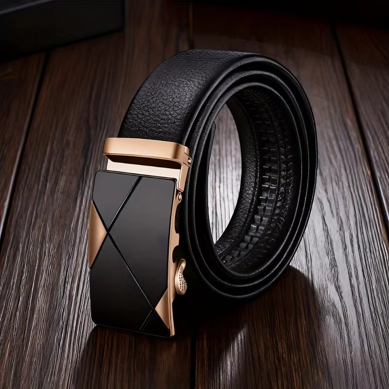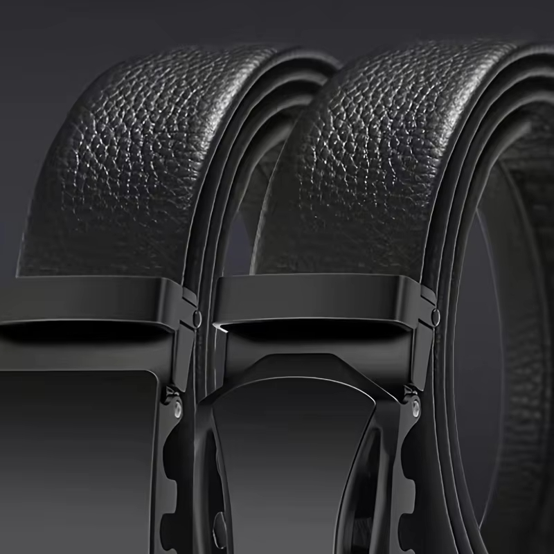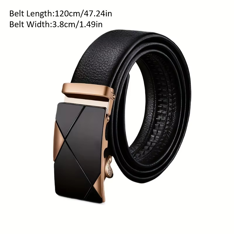 • 120cm Fashionable Business Casual Men's Belt Auto Metal Buckle PU Leather Adjustable Pants Waistband for Male