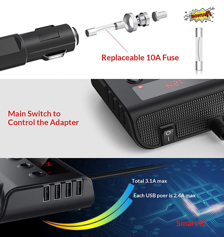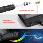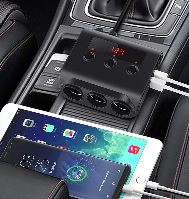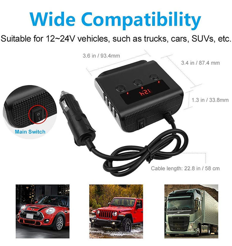 - Triple Sockets: Three independent sockets provide up to 120W power each, ideal for powering multiple devices like GPS, dash cameras, and car fans simultaneously, without surpassing the 120W overall limit.
