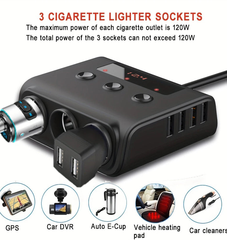 1 x Car Charger Adapter (3 Sockets, 4 USB Ports)