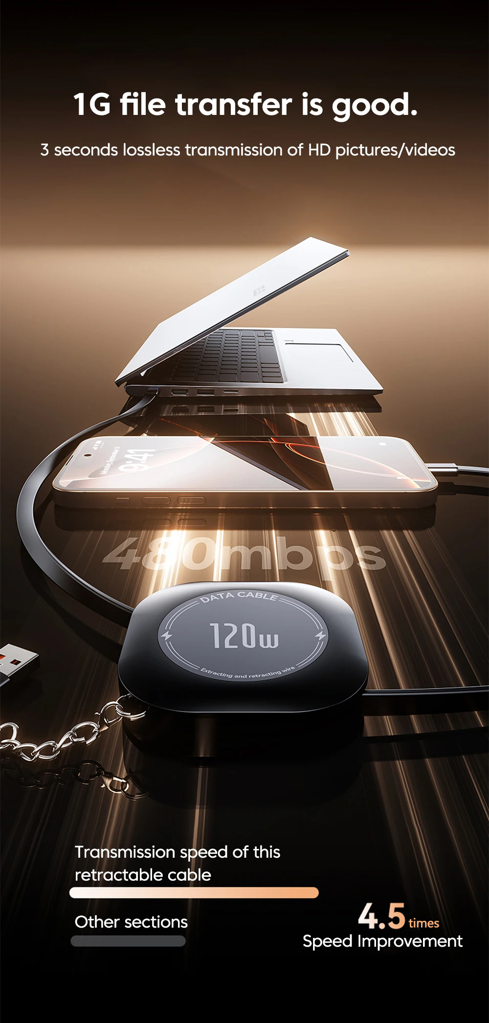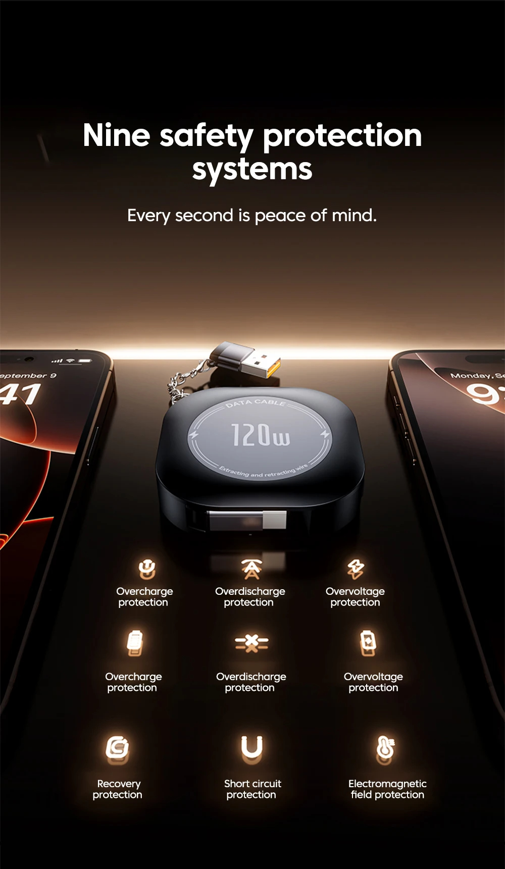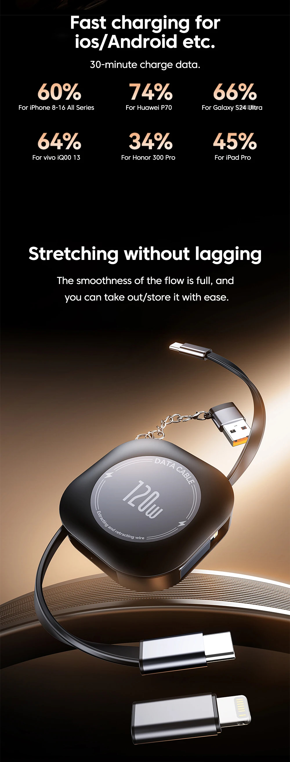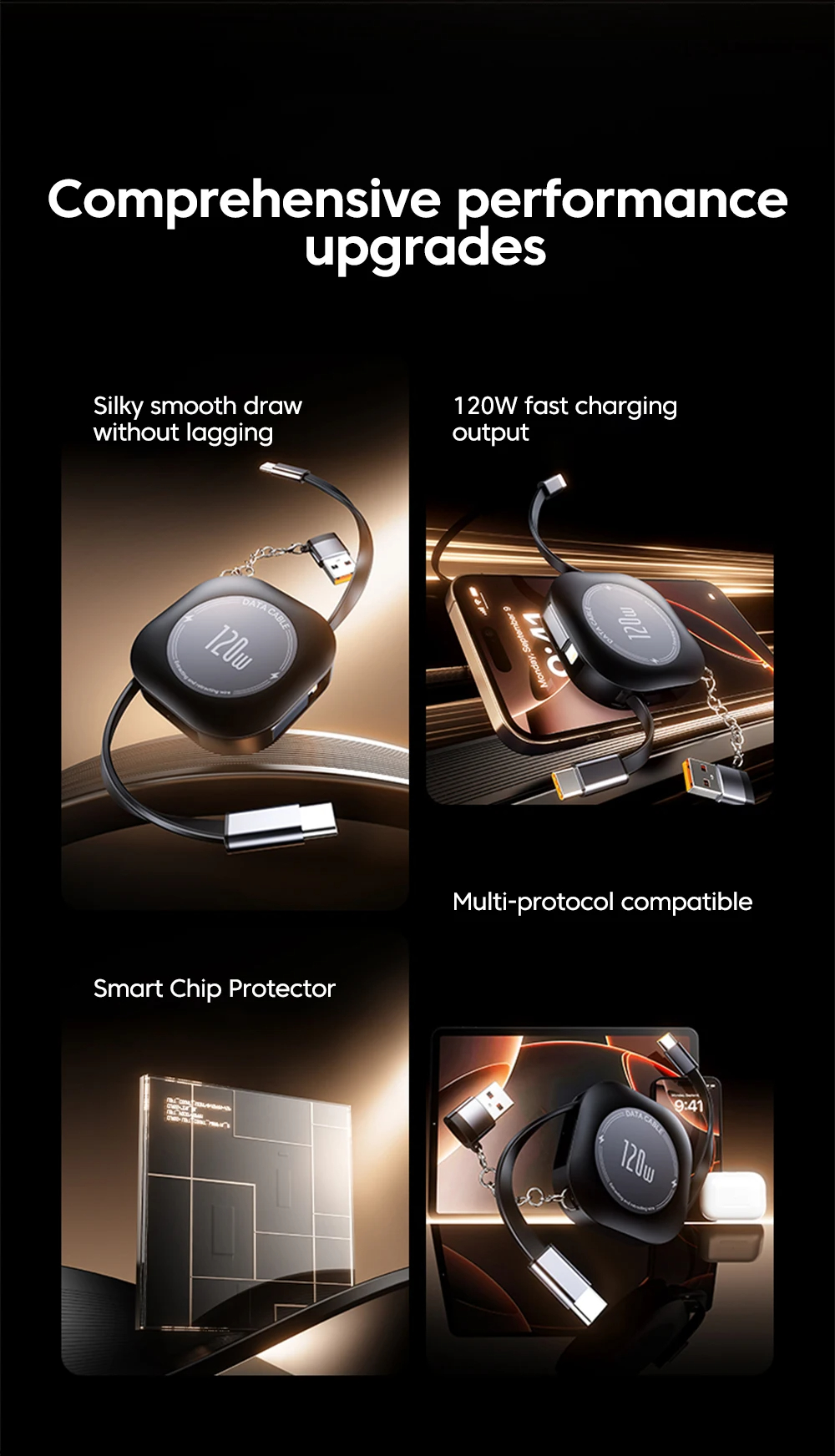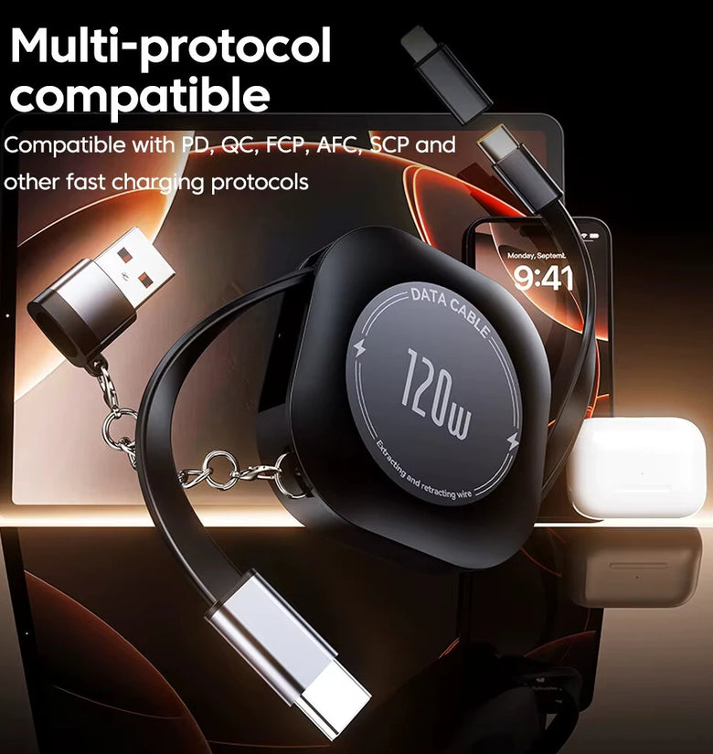 1. Retractable Cable Design: Compact and easy-to-store mechanism without tangling.