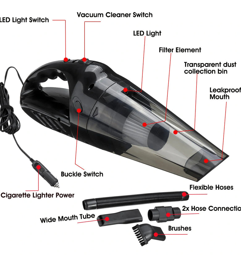 • 120W Portable Auto Car Handheld Vacuum Cleaner Duster Wet & Dry Dirt Suction with LED Light