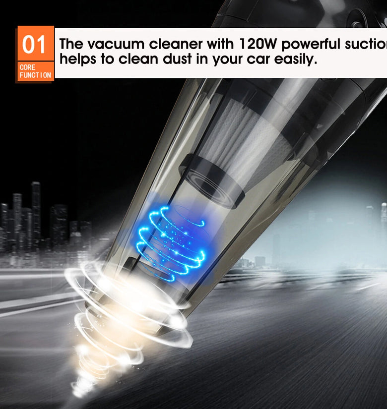 1.The vacuum cleaner with 120W powerful suction helps to clean dust in your car easily.
