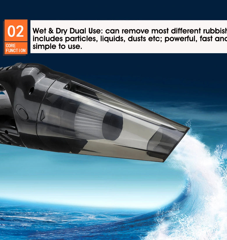2.Wet & Dry Dual Use: can remove most different rubbish, includes particles, liquids, dusts etc; powerful, fast and simple to use.
