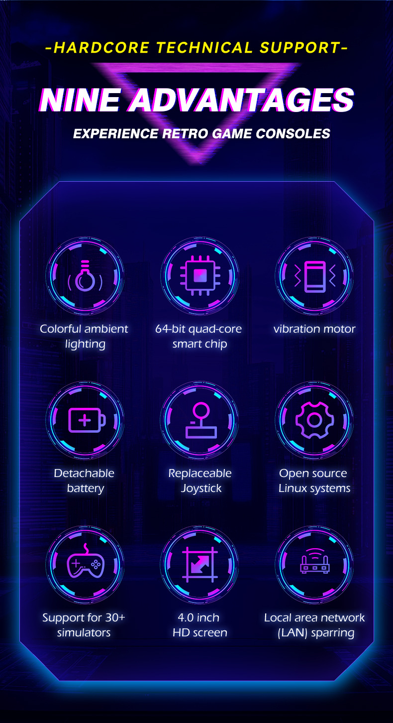 1. Support for 30+ Emulators: Compatible with systems like NEOG10, GBA, N64, CPS1-3, forPSP, and more.Package Include: