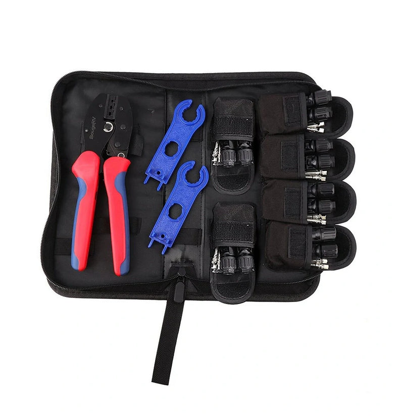 COMPLETE TOOL KITTo install solar connectors easily and accuratelyACCURATE DESIGNDesign of accurate crimping molds and complete locking ensure high of crimping quality when crimping repeatedly (2.5/4/6 mm2)HUMANIZATION HANDLE DESIGNProvided with one set of dies in handles for using easily energy savingSolar connector crimping tools / Solar PV Tool KitsSpecifications: