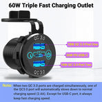 • 12V-24V 60W Triple USB Car Charger Socket PD3.0 & Dual QC3.0 with Touch Switch Fast Charge Adapter Bus Trailer Boats