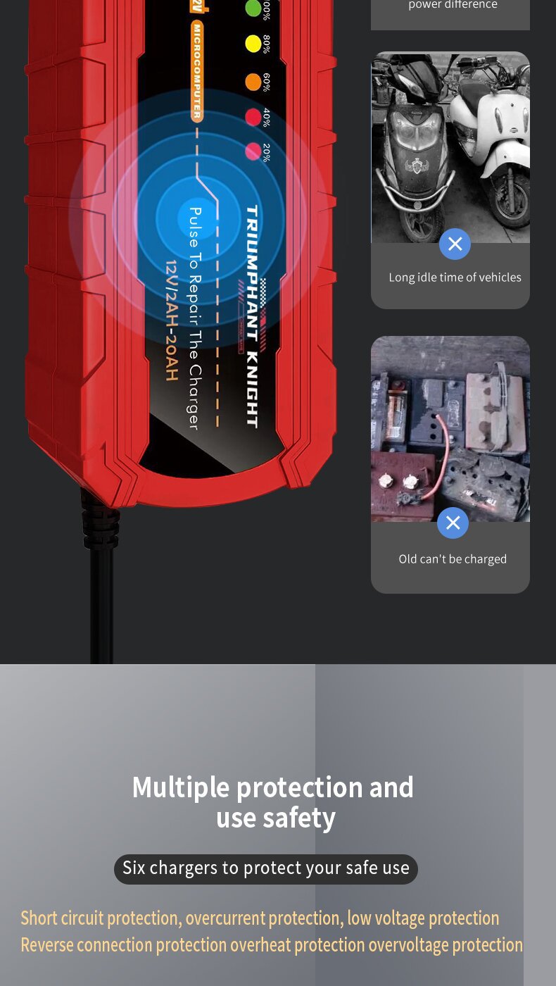 • 12V 2A Motorcycle Battery Charger Fully Intelligent Led Digital Display Pulse Repair Function
