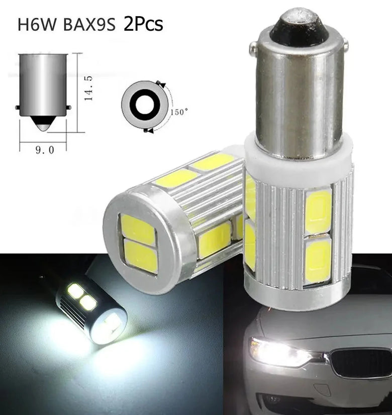12V 2PCS High Brightness Width Indicator Light Bulb BAX9S H6W 10 SMD White Light LED Car Side Light for BMW 3 Series F30 F31