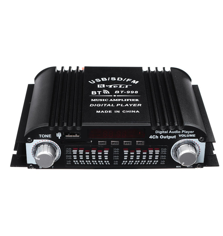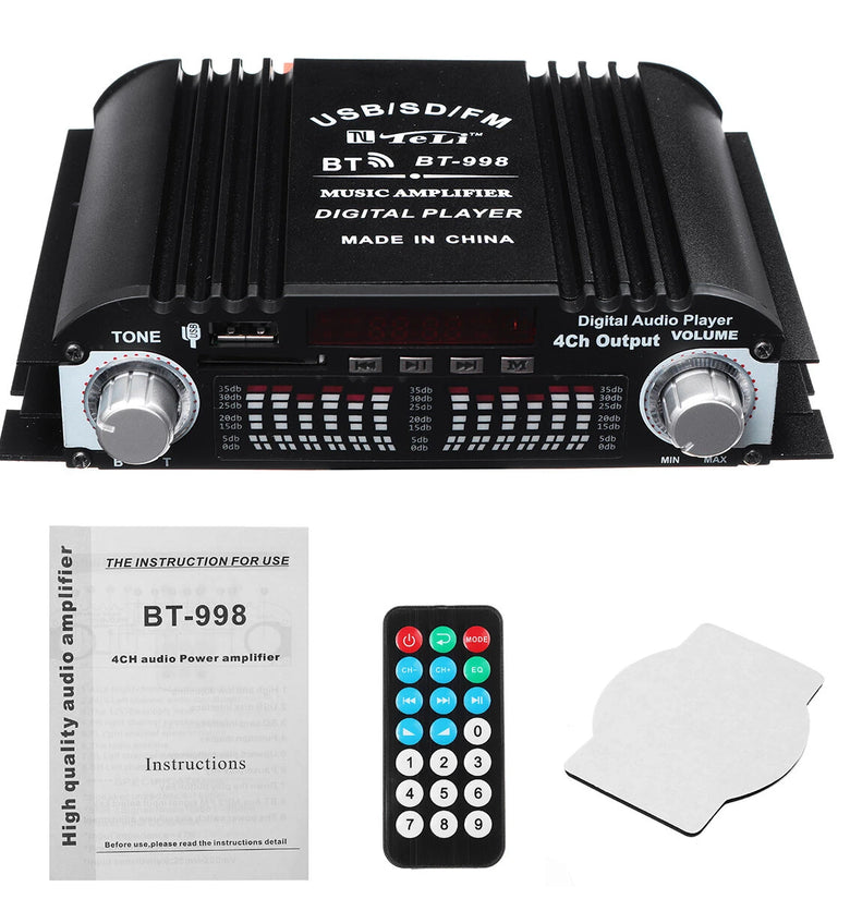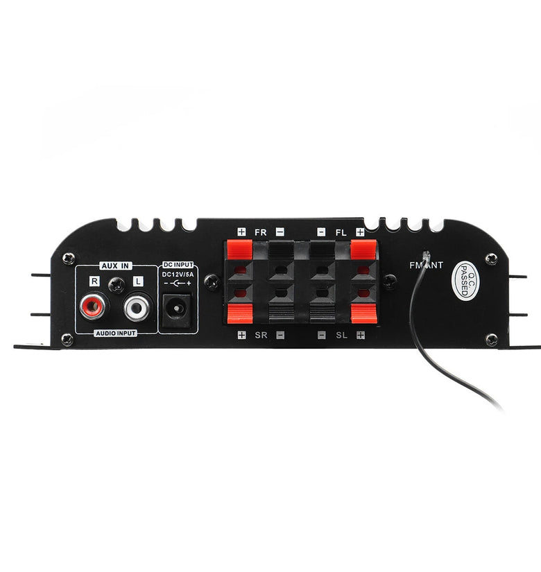 Rated Voltage: DC12V Rated Power: 60W x 4 Maximum Power: 180Wx4 Resolution: 20-20KHz Distortion Rate: 0.4 Impedance: 4-16 ohm SNR: ≥ 80dB Effective Frequency Range: hz-20 20KHz Input Sensitivity: 150-300mv Peak Value: 180Wx4 |