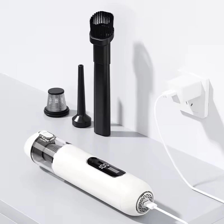 - Compact and Portable Design: With its sleek and lightweight design, the vacuum cleaner is easy to handle and maneuver. Perfect for cleaning tight spaces like drawers, desks, and vehicle interiors without causing fatigue.