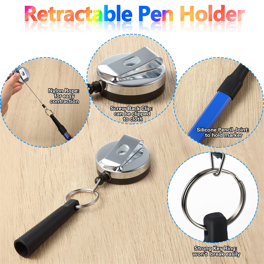 3.Functional Retractable Pen Holder: The retractable holder features a non-slip silicone pen cover and a robust 24-inch cord, enabling hands-free marking and preventing accidental pen loss.