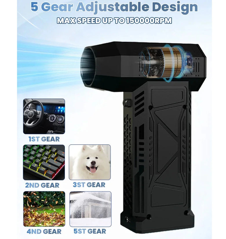 150,000 RPM Multifunctional Mini Turbo Blower 5 Speed Gear LED Display Air Blower Handheld Car Fan Air Duster with Light