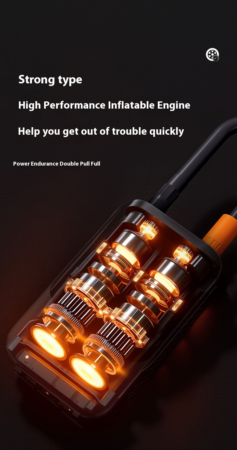 Achieves inflation speeds of up to 19L/min with a pressure range of 3-150 PSI. Fully charges in 3-5 hours, delivering sufficient power to inflate up to two car tires on a single charge.