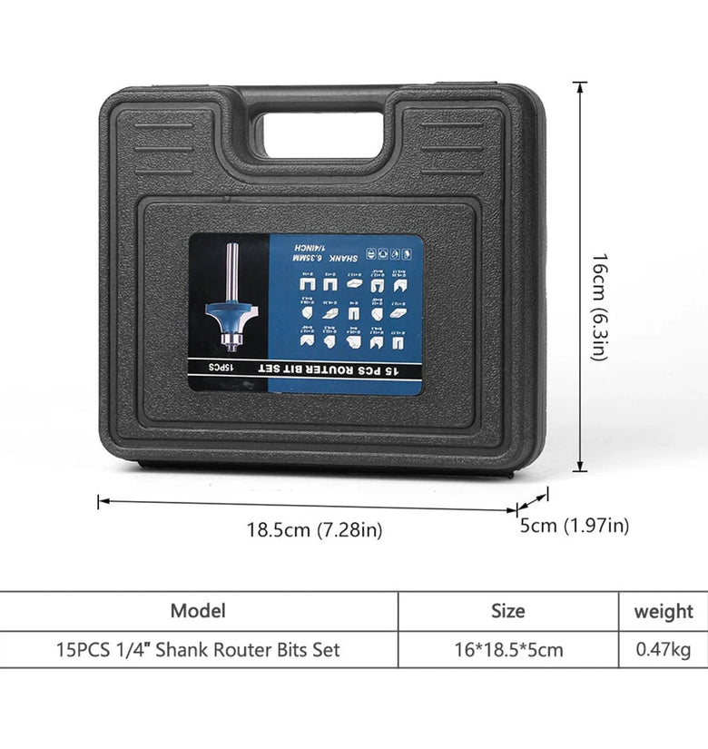 Product Name: 15pcs 1/4 Inch Shank Router Bit Set