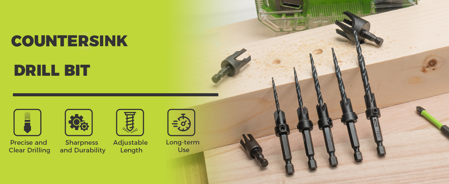 Easily adjust drill lengths using the included allen wrench to achieve precise pilot holes and countersinks tailored perfectly for your woodworking projects.