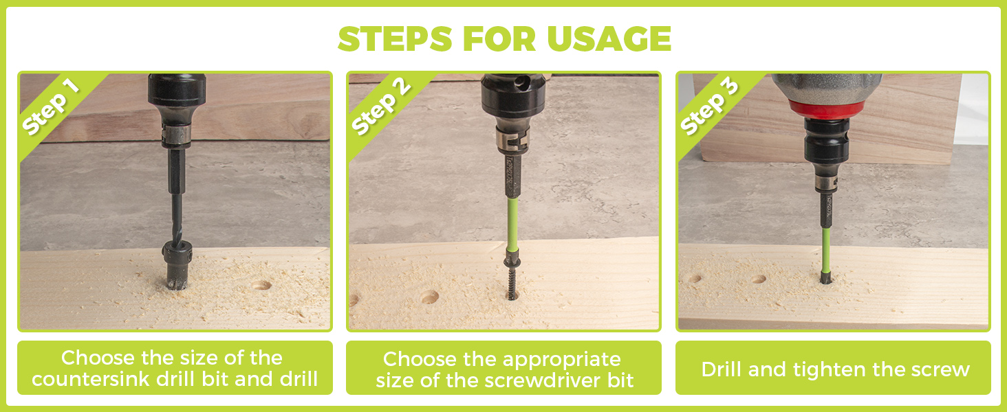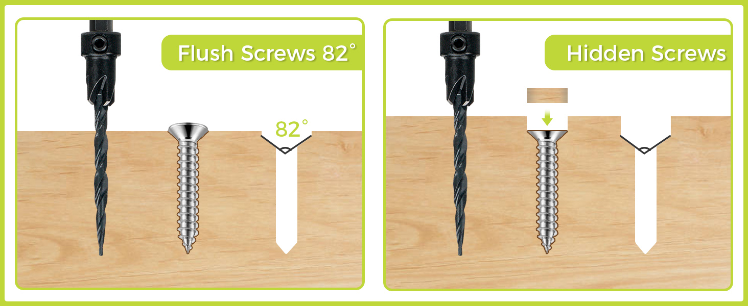 Each countersink drill bit features sharp cutters and an 82-degree counterbore angle, ensuring fast, smooth drilling and an aesthetically well finish in both hard and soft woods.