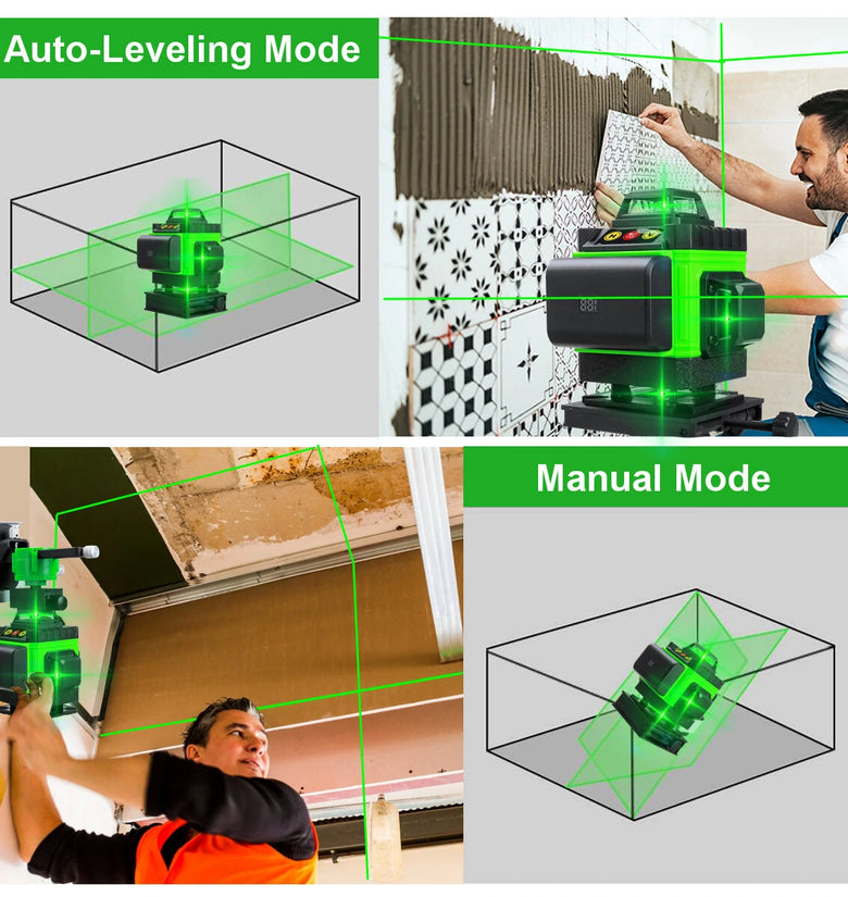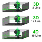 • 16 Lines 4D Laser Level, Green Laser Line, Self Leveling, Horizontal Lines &360 Degree Vertical Cross with 1/2 Battery for Outdoor