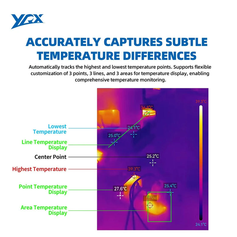 Equipped with a 96×96 infrared resolution and thermal sensitivity of <40mK, it provides clear and detailed imaging for precise temperature analysis.