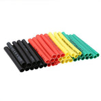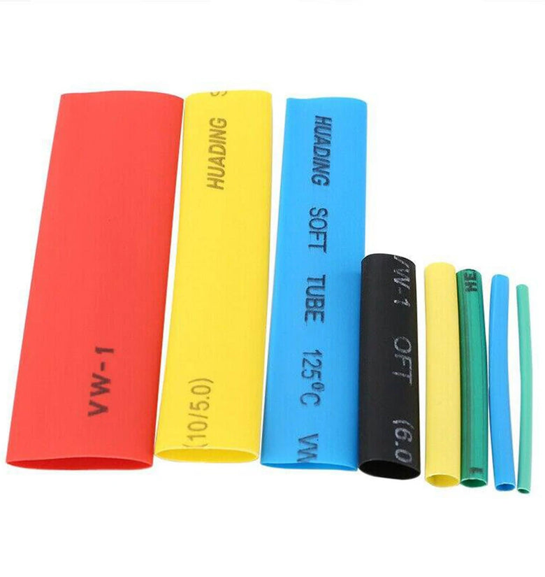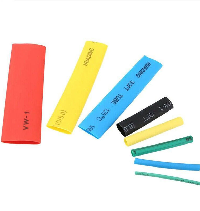 Provided inner diameter: 1.0mm, 2.0mm, 3.0mm, 4.0mm, 6.0mm, 8.0mm, 10.0mm, 14.0mmMaterial: PolyolefinShrinkage rate: 2:1 (the maximum shrinkage will be 1/2 of the provided diameter)Operating temperature: -55°C to +125°CMinimum shrink temperature: +70°CFull shrinkage temperature: +110°C (maximum)Tensile strength: 10.4 MpaDielectric strength: 15 kV/mmFlammability: flame retardantDetails: (quantity x provided inner diameter x single length)60 xφ1.0x 40mm (yellow, black, red, green)30 xφ2.0x 40mm (yellow, black, red, blue)16 xφ3.0x 40mm (yellow, black, red, green)16 xφ4.0x 40mm (yellow, black, red, blue)16 xφ6.0x 40mm (yellow, black, red, green)10 xφ8.0x 80mm (yellow, black, red, blue)8 xφ10.0x 80mm (yellow, black, red, green)8 xφ14.0x 80mm (yellow, black, red, blue)