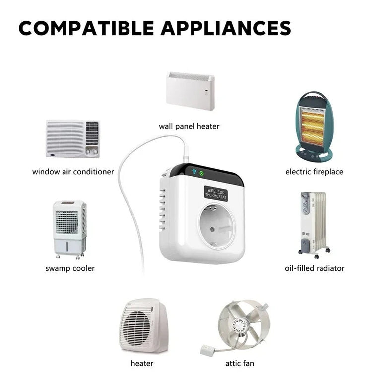 5. Wide Compatibility: Supports a variety of appliances including heaters, air conditioners, and fans.