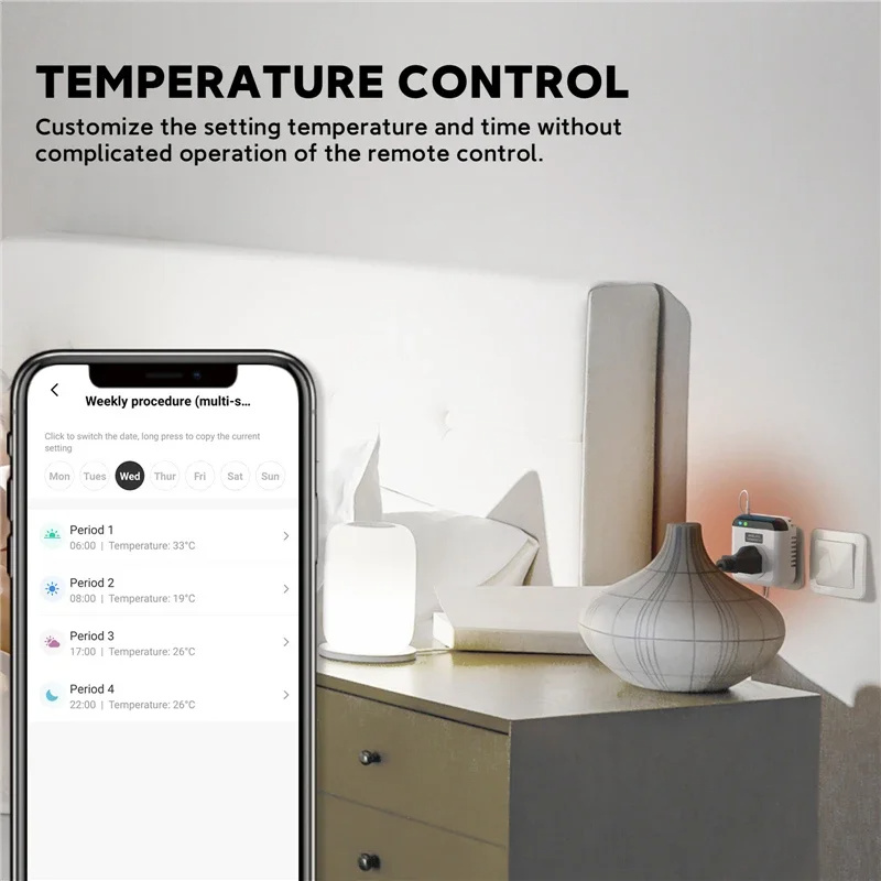 6. Customizable Temperature Settings: Allows you to set and manage temperature schedules for different times and days.