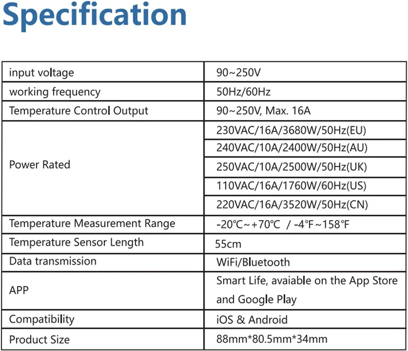 2. Smart App Control: Conveniently control temperature settings from your smartphone using the Tuya or Smart Life app.
