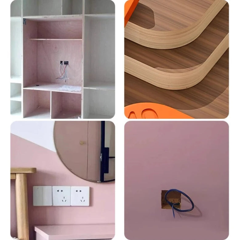 1. Multifunctional Design: This woodworking template integrates three essential functions into a single tool, making it ideal for a variety of tasks such as wardrobe installations and wall socket cutouts.