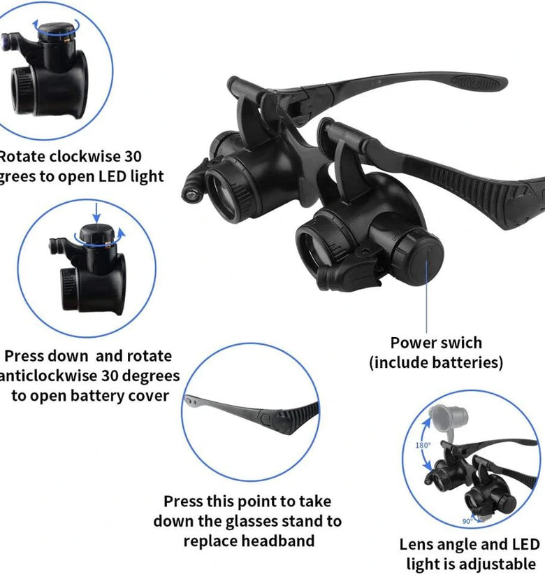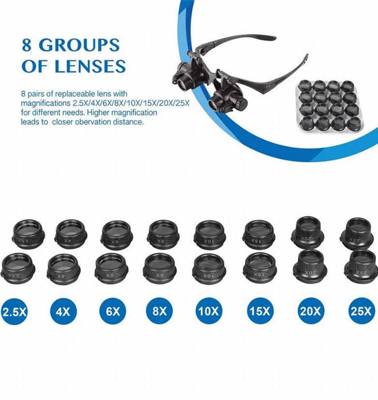 Wide Range of Magnification: Our Head-Mounted Magnifier Glass offers a comprehensive range of magnification from 2.5X to 25X, suitable for various precision tasks such as jewelry making, watch and clock repair.