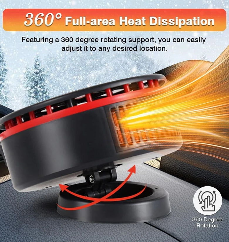 - 360° Adjustment: Designed with a 360° adjustable mechanism, this car heater fan offers all-around heat distribution. The wide air outlet and broad heating range effectively warm the entire car interior, enhancing overall driving comfort.