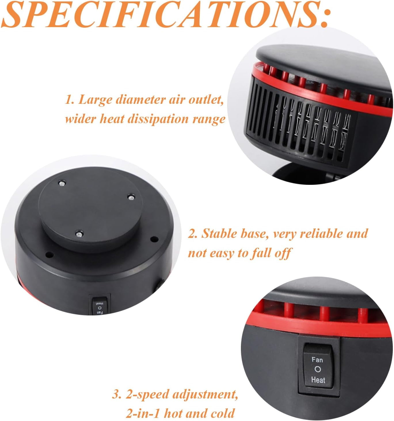 • 2 In 1 Car 360 Rotating Heater Fan Car Heater Fan Portable Car Heater with Cooling Function 150W 12V Windshield Defroster
