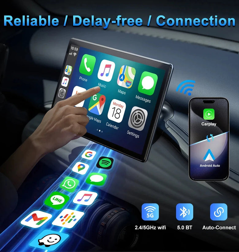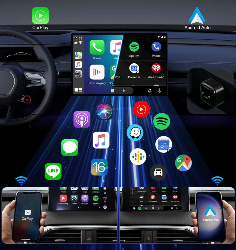 Transform wired CarPlay or Android Auto into fully wireless systems with advanced Bluetooth 5.0 and dual-band WiFi technology for uninterrupted and fast data transmission.