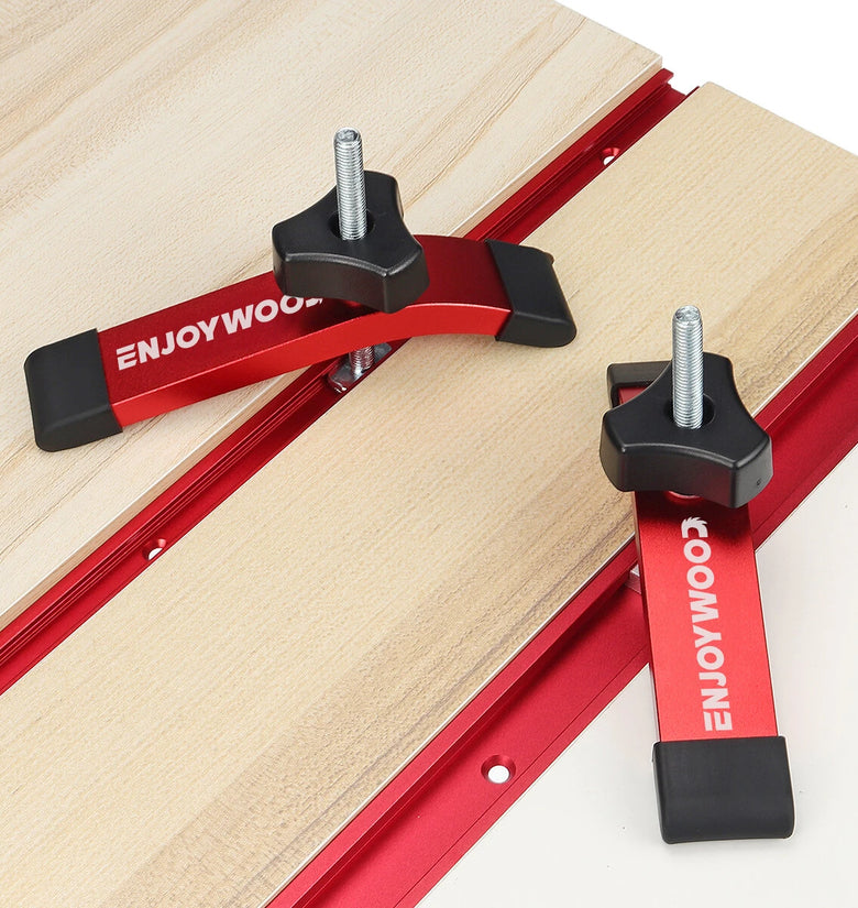 1. ENJOYWOOD quick acting hold down clamps includes T bolts and T sliders, perfect for all kinds of T-track.