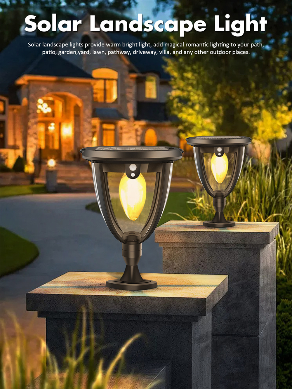 - High-Efficiency Solar Panel: Upgraded solar cells provide fast charging & longer runtime, ideal for decorative lighting, security lighting, and landscape illumination.