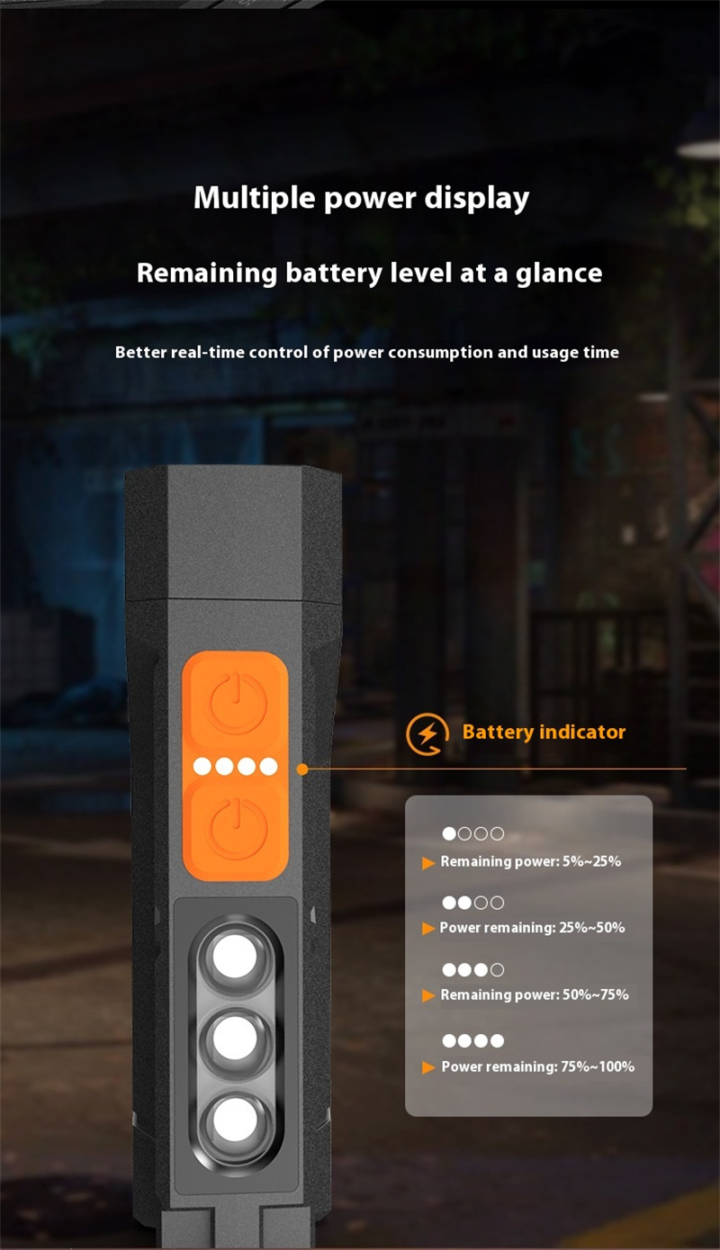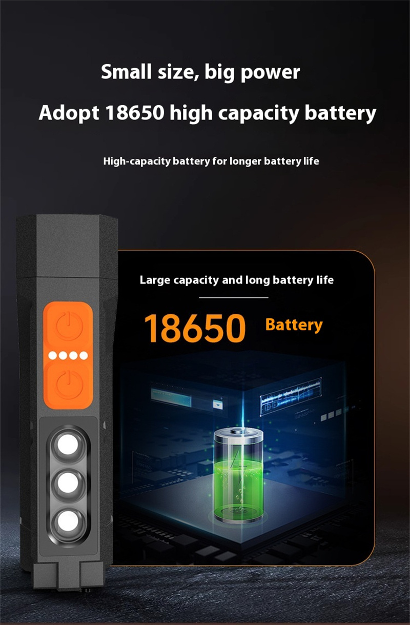 1.Long-lasting Battery: With the built-in lithium battery, this flashlight ensures a lasting power supply during outdoor adventures.