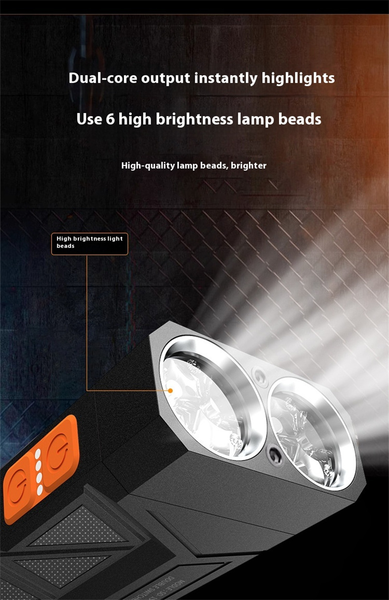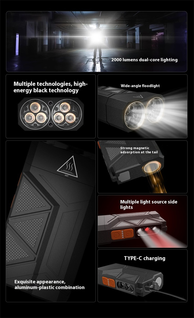 • 2000LM High Brightness Outdoor LED Flashlight with Sidelight Multi Light Source Strong Light Long-Range Emergency Charging Treasure Home Work Lighting Portable LED Torch