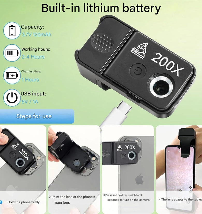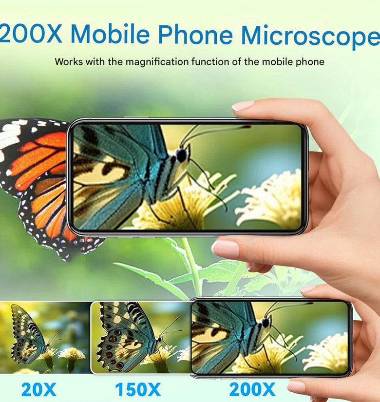 1.High-Quality Magnification: Offers 200x digital magnification with multi-layer optical coating for precise and detailed microscopic exploration. Perfect for discovering plant structures, skin textures, or insects in incredible clarity.