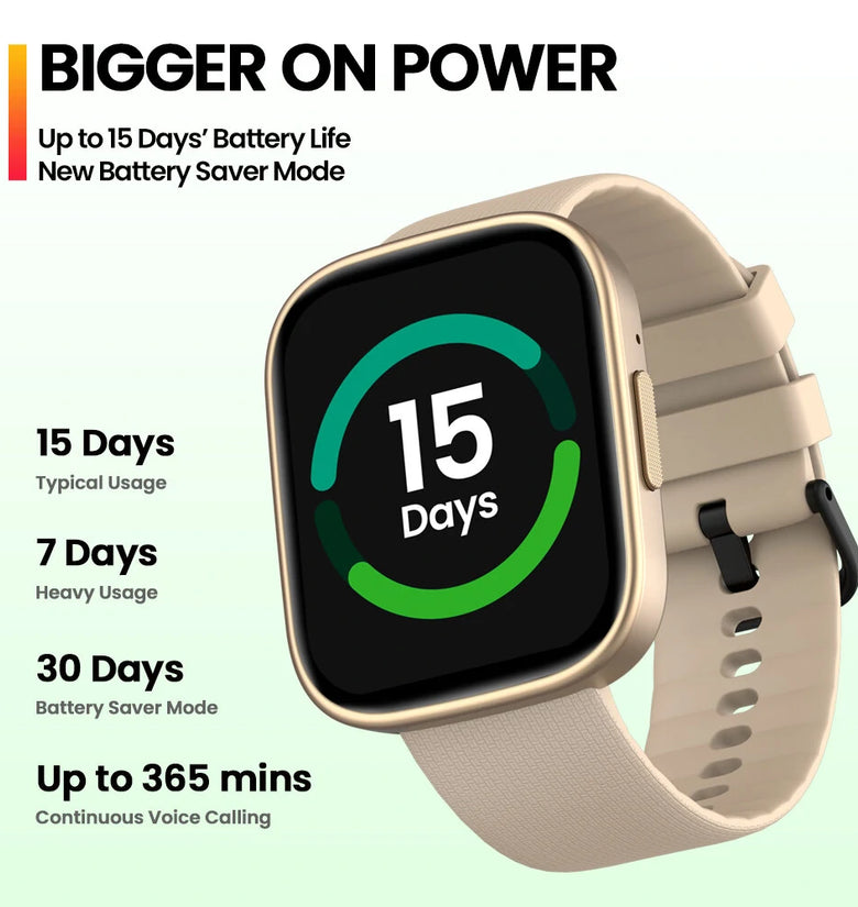 Battery Saver Modes: Up to 30 days Typical Usage Modes: Up to 7 days Heavy Usage Modes: Up to 5 days Continuous Voice Calling: Up to 365 mins | |