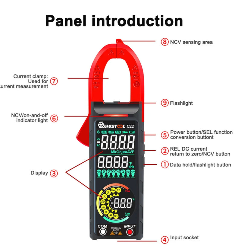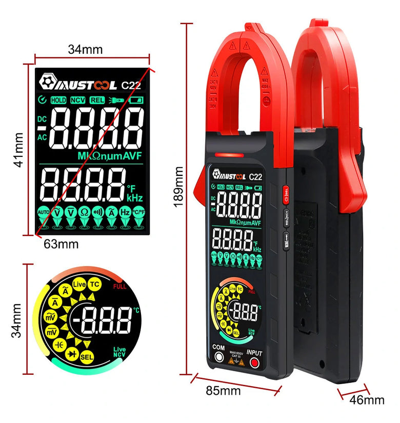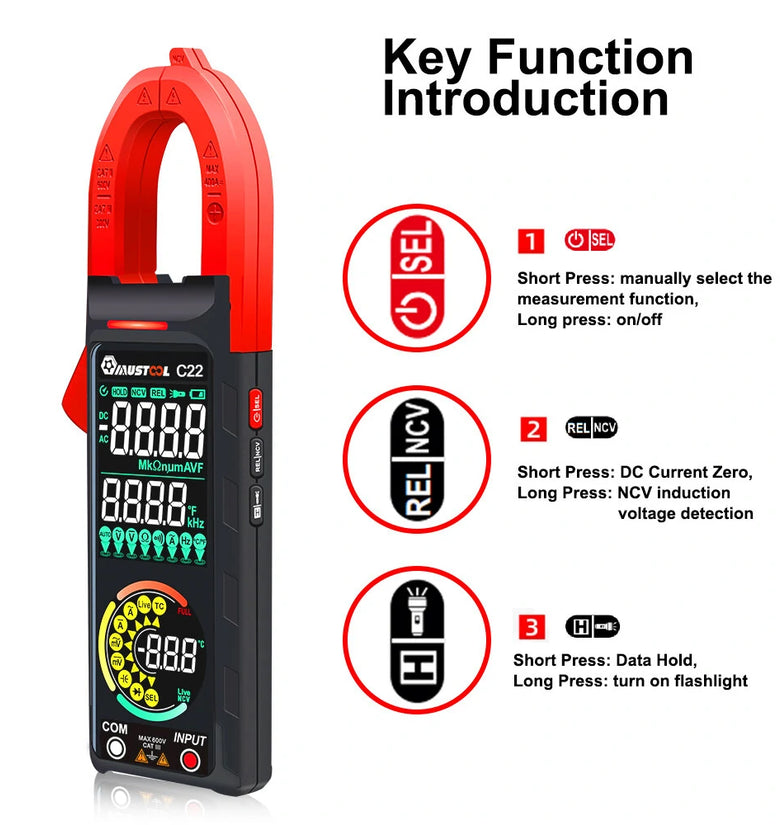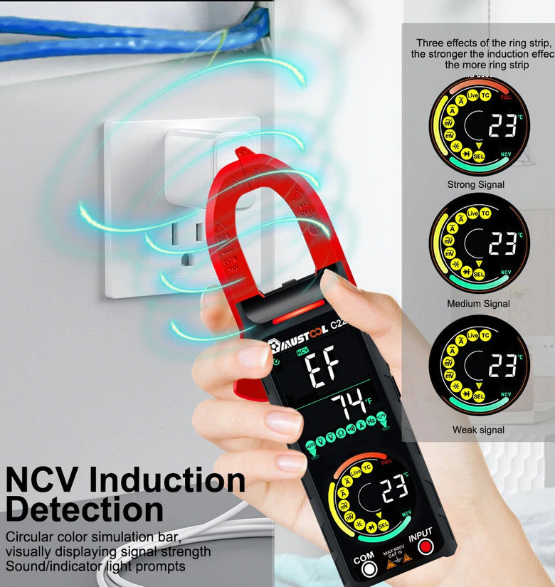 • 2024NEW Mustool C22 Digital Clamp Meter 400A High Precision AC/DC Current Measure with Live Wire Recognition NCV Induction Detection Dual VA Color Screen